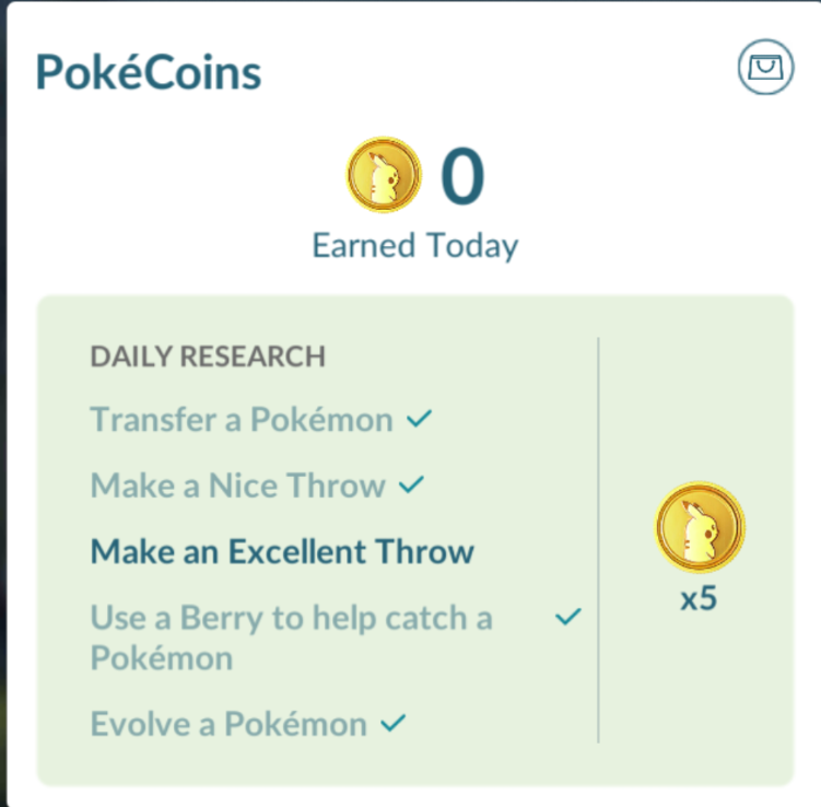 - La otra manera de obtener las 20 monedas diarias será completando actividades diarias. Como Ganar una incursión, evolucionar un pokemon, darle más poder a un pokemon, hacer un tiro exclenete/genial, etc.