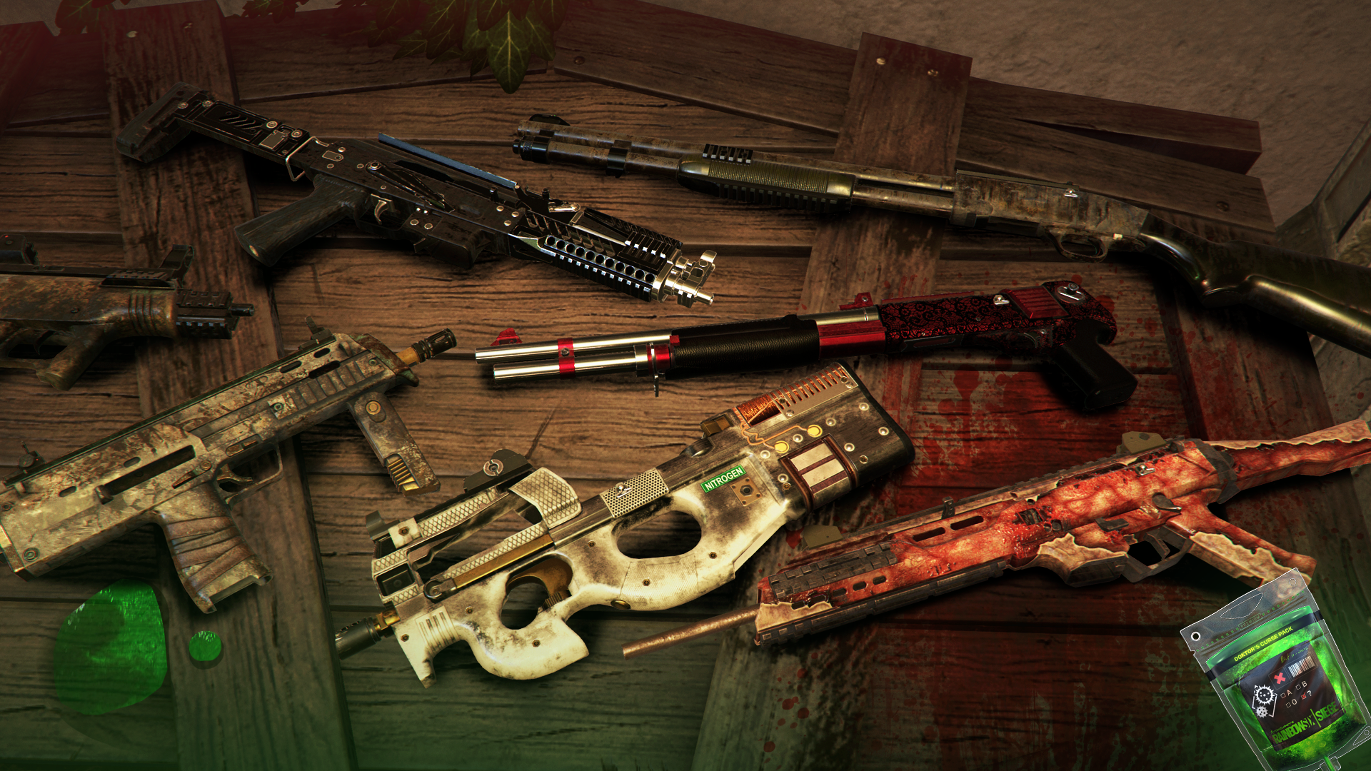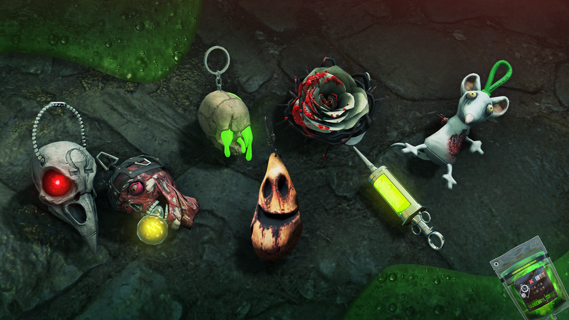 La colección “Doktor’s Curse” presentará nuevos skins para cinco operadores: Smoke, Kapkan, Frost, Lesion y Ela, quienes tendrá su propio set de cuatro ítems, así como Doc y Bandit, para un total de 28 ítems. Adicional a ello, los skins clásicos de Halloween de 2018 estarán disponibles por tiempo limitado una vez más.