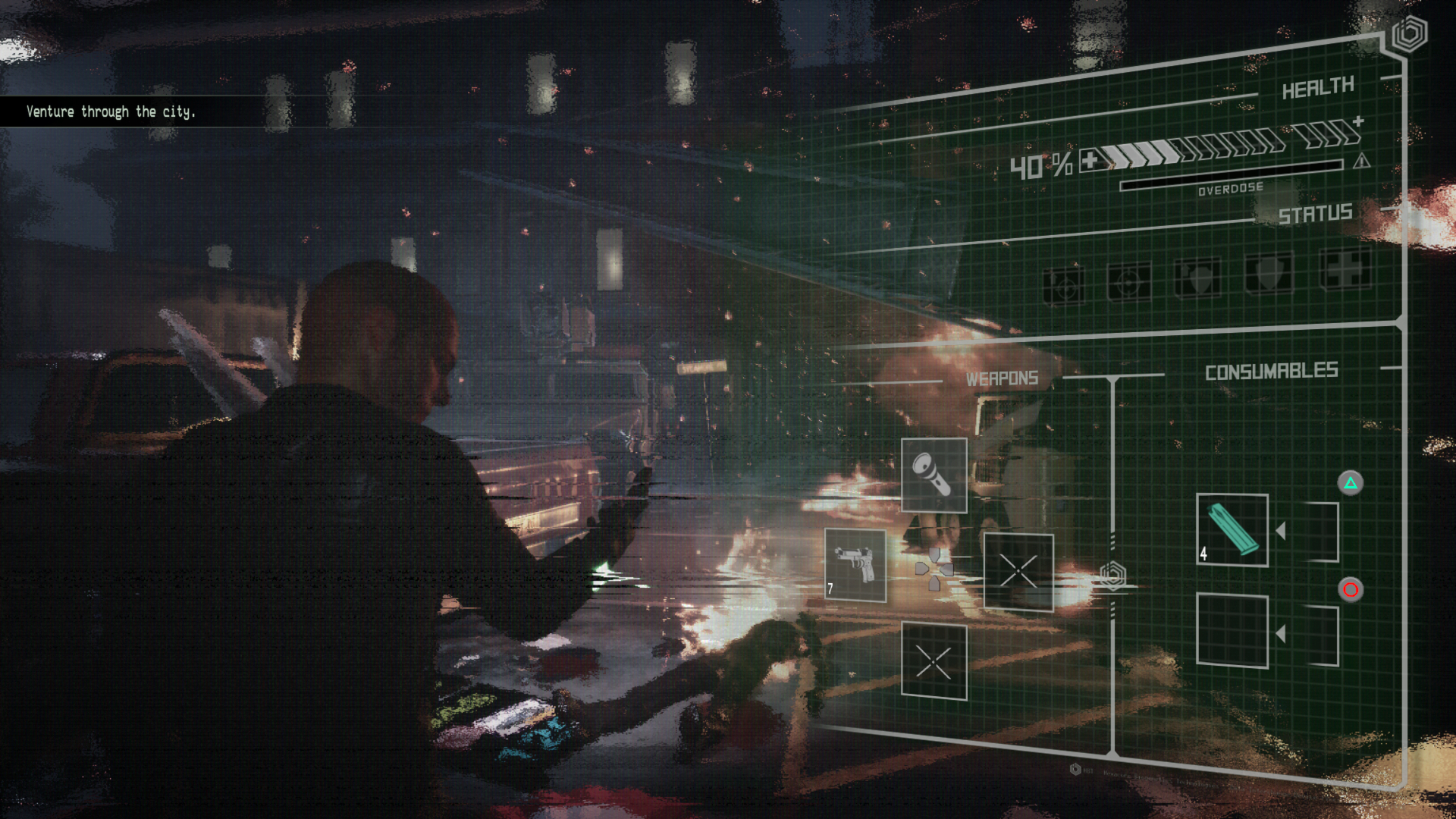 Lo que cabe destacar en primer lugar es el tema del inventario y menú rápido para consultar el estado del personaje o controlar cuanta munición tenemos. Pero para mirar el mapa, leer archivos, administrar cargadores y demás, deberemos desplegar un menú diegético en tiempo real que nos dejará vulnerables al ataque de los enemigos, por lo que habrá que saber cómo administrar los recursos cuando no tengamos enemigos cerca. Aunque acá ya aparece el primer problema, y es que es muy irrisorio tener que desplegar el menú que tarda en abrirse para cambiar de pestañas y consultar el mapa, por ejemplo, siendo que en un survival es primordial el consultar el mapa dado que, si bien hay backtracking, no lo habrá lo suficiente como para aprendernos de memoria las localizaciones, que variaran dependiendo del capítulo que juguemos y con el personaje que manejemos. Más se recalca cuando tenemos que controlar a tres personajes distintos, por lo que quizás cuando ya estemos acostumbrados a un escenario, tendremos que cambiar inevitablemente para continuar con la historia, lo que hace desafiante cada nuevo capítulo, sí, pero también estresante al no tener una buena mecánica jugable y fluida para consultar el mapa.