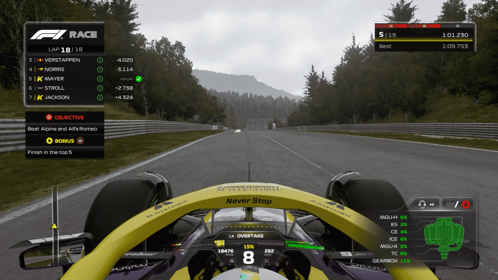 En pista, Braking Point 2 funciona de manera muy similar al primero, ya que tenemos diferentes objetivos y diferentes escenarios en pista que tenemos que cumplir, como llegar al top 10 o top 5, alcanzar a tal piloto, no dejar que este otro piloto nos pase, etc. Estos objetivos también están acompañados de un objetivo secundario que nos puede ayudar a conseguir un mejor nivel de reputación y performance, como llegar al podio y marcar la mejor vuelta, o alcanzar a tu compañero de equipo, entre otros. Lo copado y un cambio que me gustó, es que por fin el equipo reacciona si tuviste una carrera muy buena, si llegaste al podio o si ganaste la carrera, algo que estaba muy ausente en el 2021 y que le da ese toque de autenticidad que se nota que quieren conseguir.