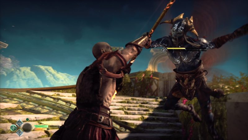 Spoilers a partir de ahora. Antes de partir aparece un personaje misterioso queriendo buscar pelea contra Kratos, y acá es donde vemos el primer enfrentamiento en serio del juego. De más está decir que Kratos gana, y esto no hace más que preocuparlo por los peligros que se avecinan al intentar cumplir con la voluntad de Faye, aunque no le queda otra y decide partir junto con Atreus.