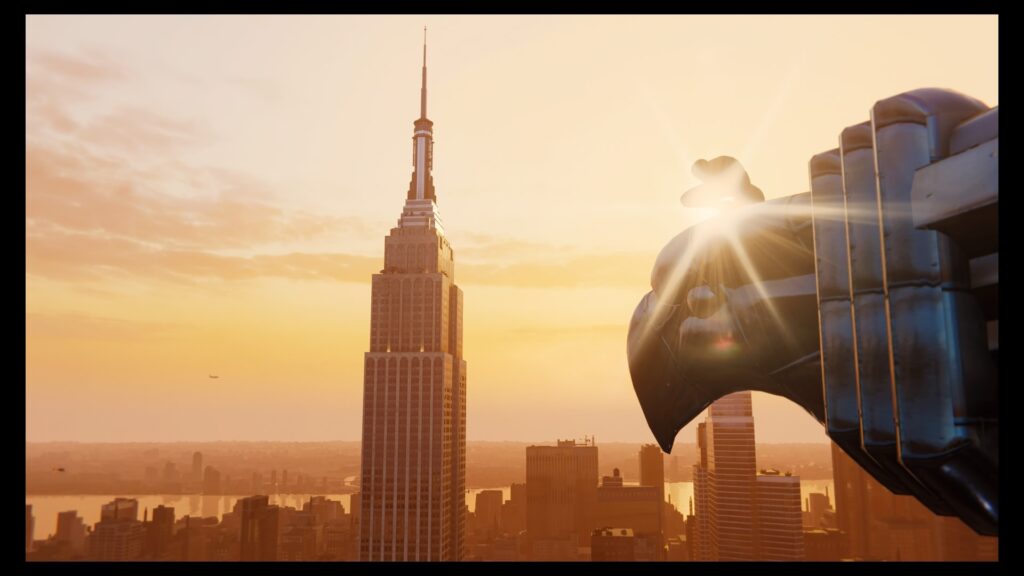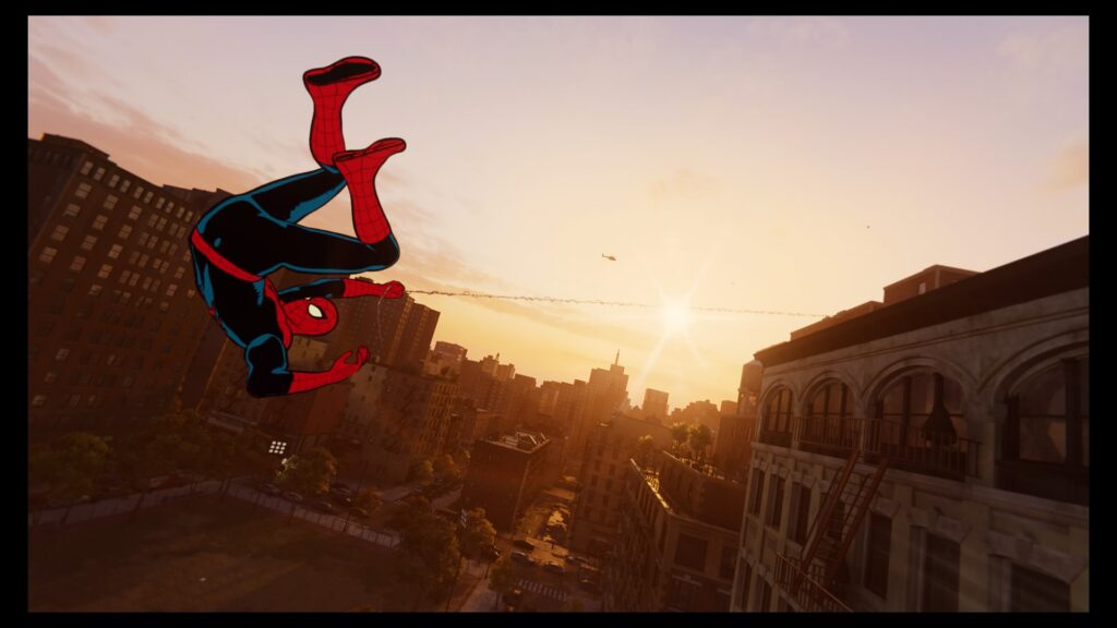 Otro acierto positivo es la cantidad de detalles que esparcieron por toda la ciudad de New York. Se puede interactuar con los transeúntes, se puede ver por dentro de las ventanas de los edificios minucias como oficinas y cuartos modelados (lo que da mucha personalidad a la ciudad), hay coleccionables que dan un vistazo a la vida personal de Peter y hacen referencia a los cómics, así como guiños a todo lo que es Marvel con landmarks icónicos: está la torre de los Avengers, el Sanctum Sanctorum del Dr. Strange, el toro de Wall Street es reemplazado por Lockjaw de los Inhumanos, etc. Hablando de la ciudad, para movernos a través de ella tenemos una mecánica estándar en juegos del arácnido: columpiarnos con su telaraña. Dicha mecánica nunca estuvo tan pulida ni fue tan divertida de usar como en este juego; el balanceo y la física está muy bien lograda, tenemos la opción de impulsarnos con objetos de los techos para ganar un boost de velocidad y, aunque un poco trivial, podemos hacer piruetas en el aire en pleno balanceo al mejor estilo Tony Hawk. Por más de tener un balanceo sin igual y super divertido, el juego nos proporciona un fast travel entre puntos claves de la ciudad, con tan solo acercarnos a una parada del metro podemos ver a Spidey cual cosplayer tomando el subte para llegar al eventucho geek de turno.