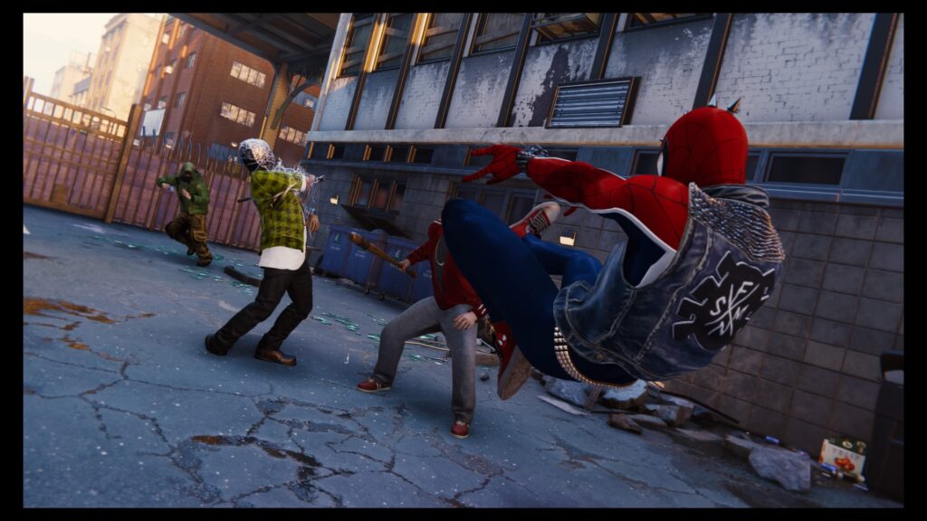 Relacionado a los gadgets y a customizar tu playstyle, tenemos una variante de una opción clásica: los trajes. No es novedad que un juego de Spider-Man te permita cambiar de look entre varias opciones de trajes provenientes de los cómics o de las películas. Tampoco es novedad que dichos trajes le den al jugador diferentes ventajas (o desventajas) a su manera de jugar, ya sea por habilidades nuevas que le permita usar o alterar stats (recarga más rápida, movimiento más rápido, golpes más fuertes, etc.). Lo que sí cambia es que estos “poderes” que trae cada traje pueden desligarse de su apariencia correspondiente, es decir, una vez desbloqueado el traje se desbloquea su poder y ambos pueden ser cargados en slots diferentes. Esta flexibilidad le permite al jugador poder crear su setup preferido, al mismo tiempo de poder mejorar los gadgets comprando upgrades con puntos.