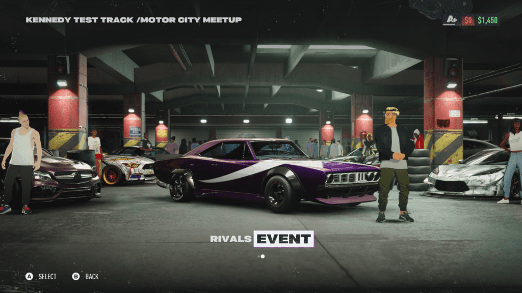 Yendo más para el lado de los eventos, tenemos una variedad bastante pequeña de modos: carreras sprint, circuitos, "rey de las curvas", eventos de drift y un evento especial llamado "Takeover", que es similar a un gymkhana en la serie DiRT. Para correr tenemos que ir a los encuentros que hay en diferentes partes del mapa dependiendo de la clase de nuestro auto. A la hora de correr, las carreras se vuelven bastante intensas, ya que la dificultad (inclusive en el modo mas fácil) es bastante elevada, eso provoca que también comprar piezas y autos nuevos se vuelva un grindeo en las primeras horas, ya que no tendremos premios con altas cifras de plata, y no podremos ganar algunas de las carreras, peor si nuestro auto no esta tuneado.