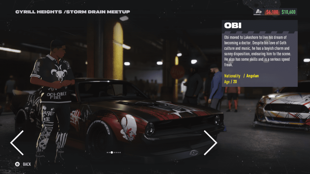 El apartado principal es su campaña de un jugador. Acá creamos a nuestro propio personaje como en Heat, con una customización a fondo que nos permite cambiarle rastros de la cara, físico y la ropa. A partir de ahí, elegimos alguno de los autos que nos ofrecen para restaurar (un Dodge Charger, un Lamborghini Countach o un Nissan Silvia) y ya nos metemos de lleno en el juego. La primera parte de este Unbound es el prólogo, que es bastante largo y nos va a tomar una o dos horitas. Es acá donde están las partes con más dialogo y cutscenes, para ya luego tirarnos de lleno en el mundo abierto y en todo lo que es el tuneo de autos y demás. Ya que hablamos de la historia, es bastante medio pelo: no hay muchas cutscenes pero no hay personajes que al menos sean interesantes, y algunas de las cosas que dicen son extremadamente cringe.