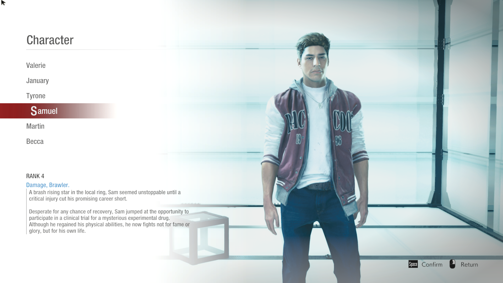 En ese caso, tenemos 6 sobrevivientes de los cuales podemos elegir, todos con habilidades y pasivas únicas. Samuel, por ejemplo, usa sus habilidades de boxeo para tener beneficios con ataques a melee, e inclusive usar sus propios puños como armas. Valerie en otro caso, puede revelar la posición de ítems, inclusive revelando piezas importantes para resolver acertijos, y también curar a los sobrevivientes, sirviendo como una support.