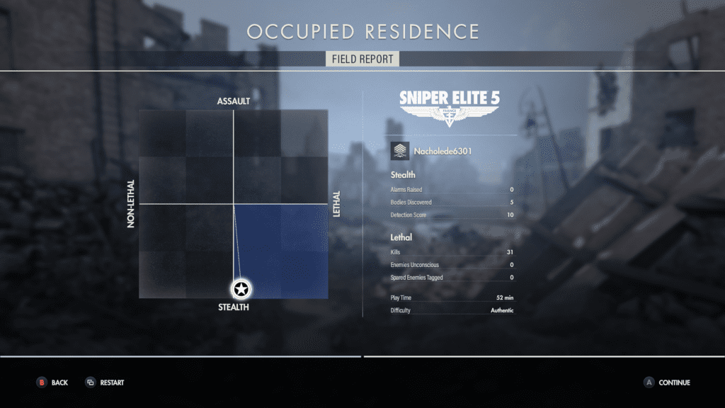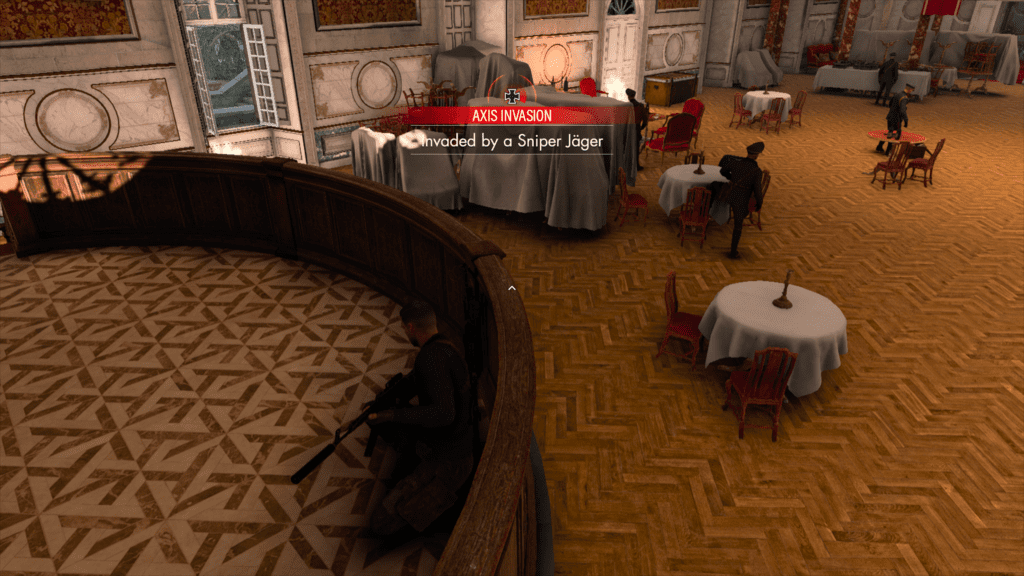 Ahora quiero hacer punto y aparte para hablar de uno de los mejores modos de todo el juego: Axis Invasion. Acá es donde podremos "invadir" la campaña de un jugador y asumir el rol de un francotirador alemán, cazando al otro jugador para matarlo. Esto hace que las cosas se pongan aun mas tensas que antes, convirtiéndolo en un juego del gato y el rato. Cuando asumimos el rol del sniper alemán, nuestra tarea obviamente es eliminar al jugador y evitar que cumpla los objetivos de la misión. Si los cumple y extrae o nos mata, es game over. Cabe destacar que tenemos la habilidad de encontrar al otro jugador mediante teléfonos, aunque eso también nos deja expuestos a nosotros, y cuando se da el combate entre los 2 es donde todo se vuelve realmente jodido. Acá es donde pasé la mayor parte de mi tiempo en el juego, ya que no solo es súper adictivo, sino que también trae sus propios desbloqueables para nuestro francotirador alemán.