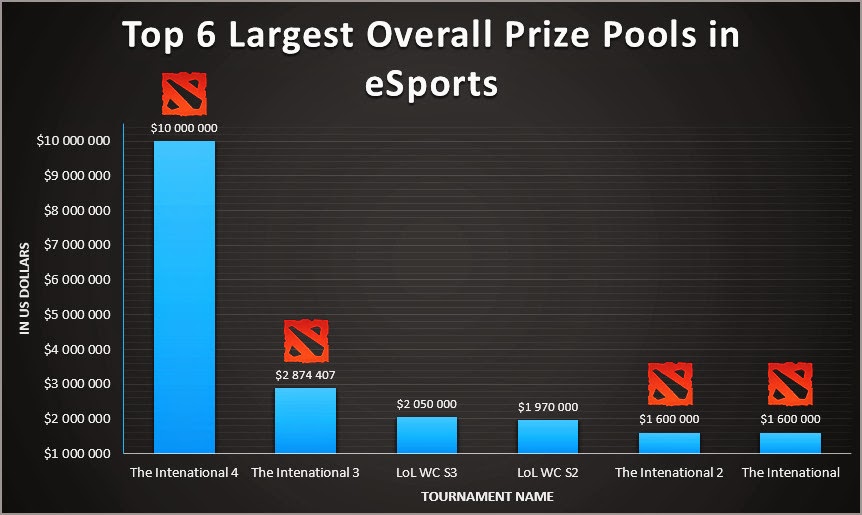 Esta es la gráfica del Top 6 de los pozos más grandes en los eSports.
